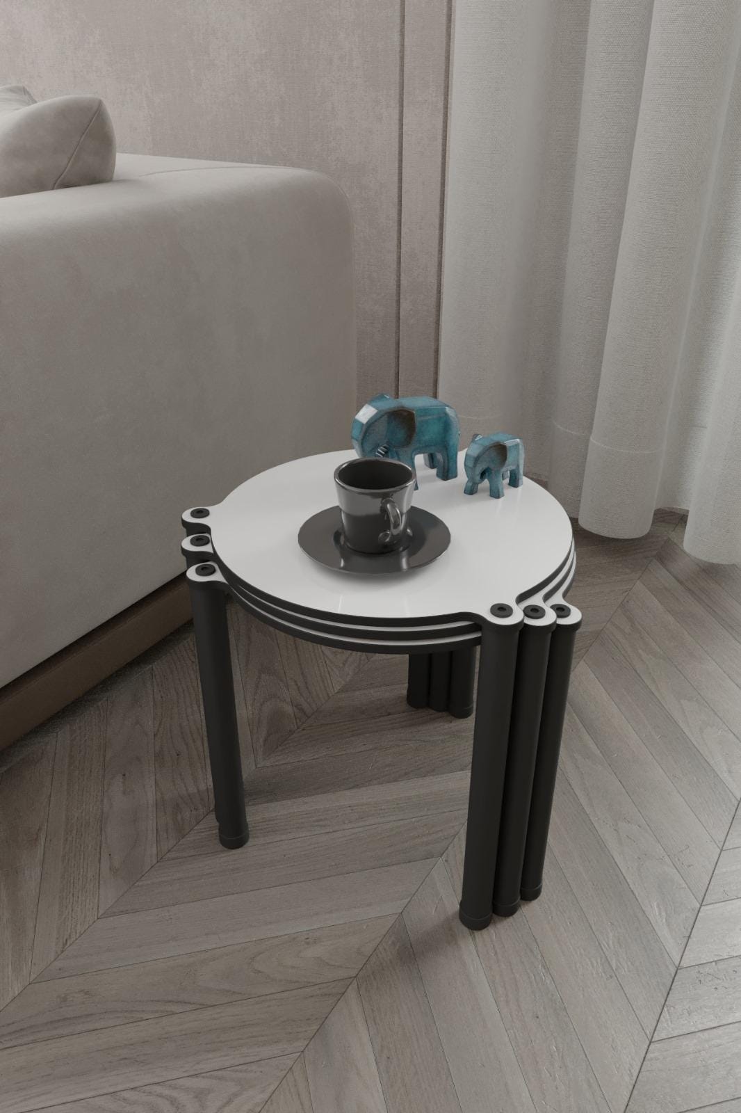 Verschönern Sie Ihren Wohnraum mit diesem runden Satz von 3 Satztischen, das entworfen wurde, u...