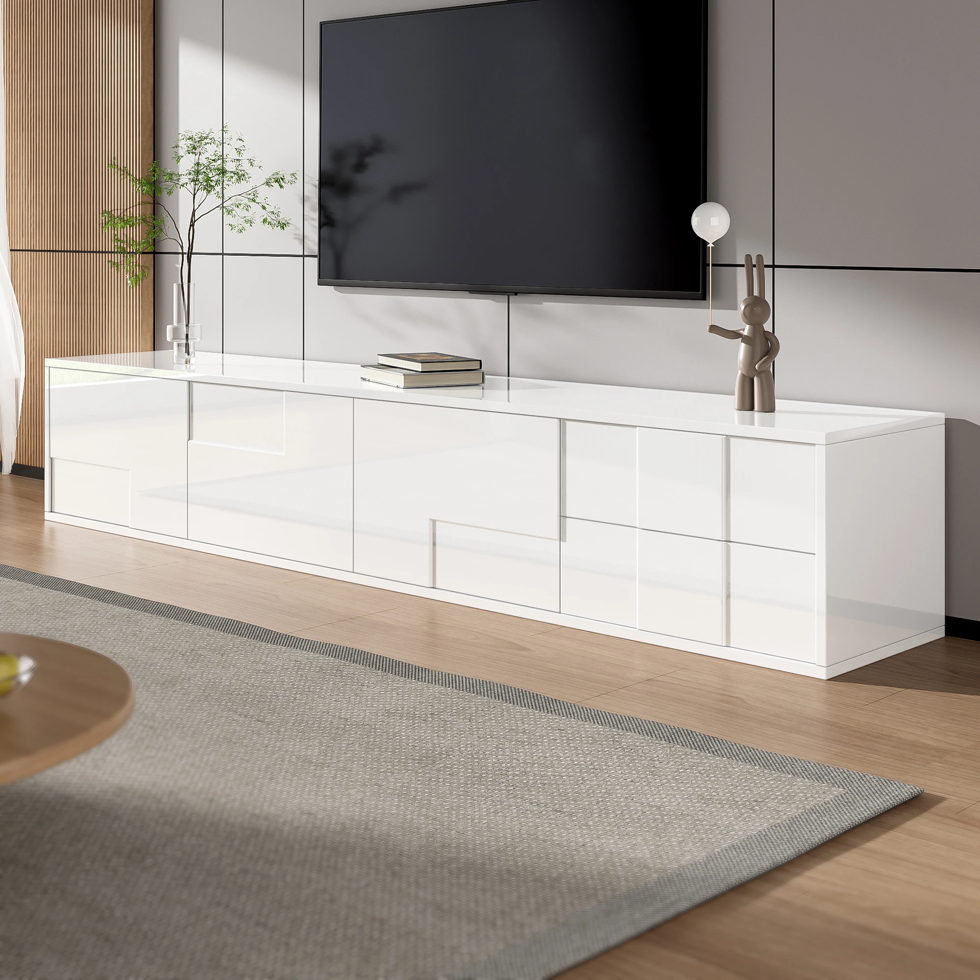 170cm Floating TV Stand, High Gloss White Media Console w/ 3 Doors & 2 Drawers. Wall-Mounted or ...