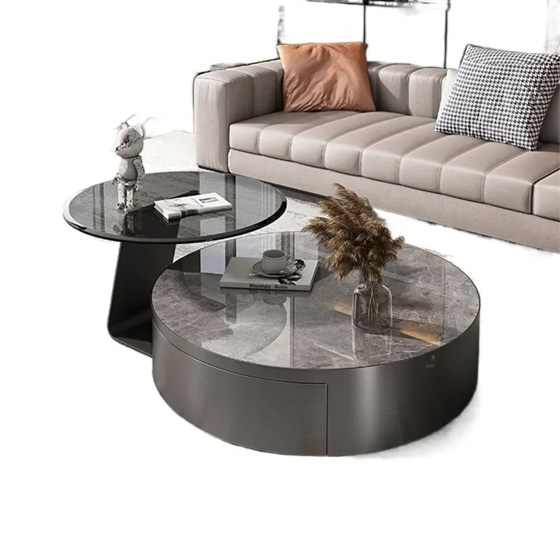 Italienischer leichter Luxus, Edelstahl, runder Couchtisch, Schiefe...