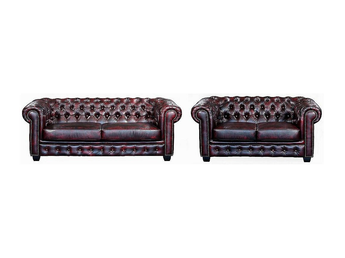 Chesterfield Garnitur 3+2 - Büffelleder - Rotbraun - BRENTON
