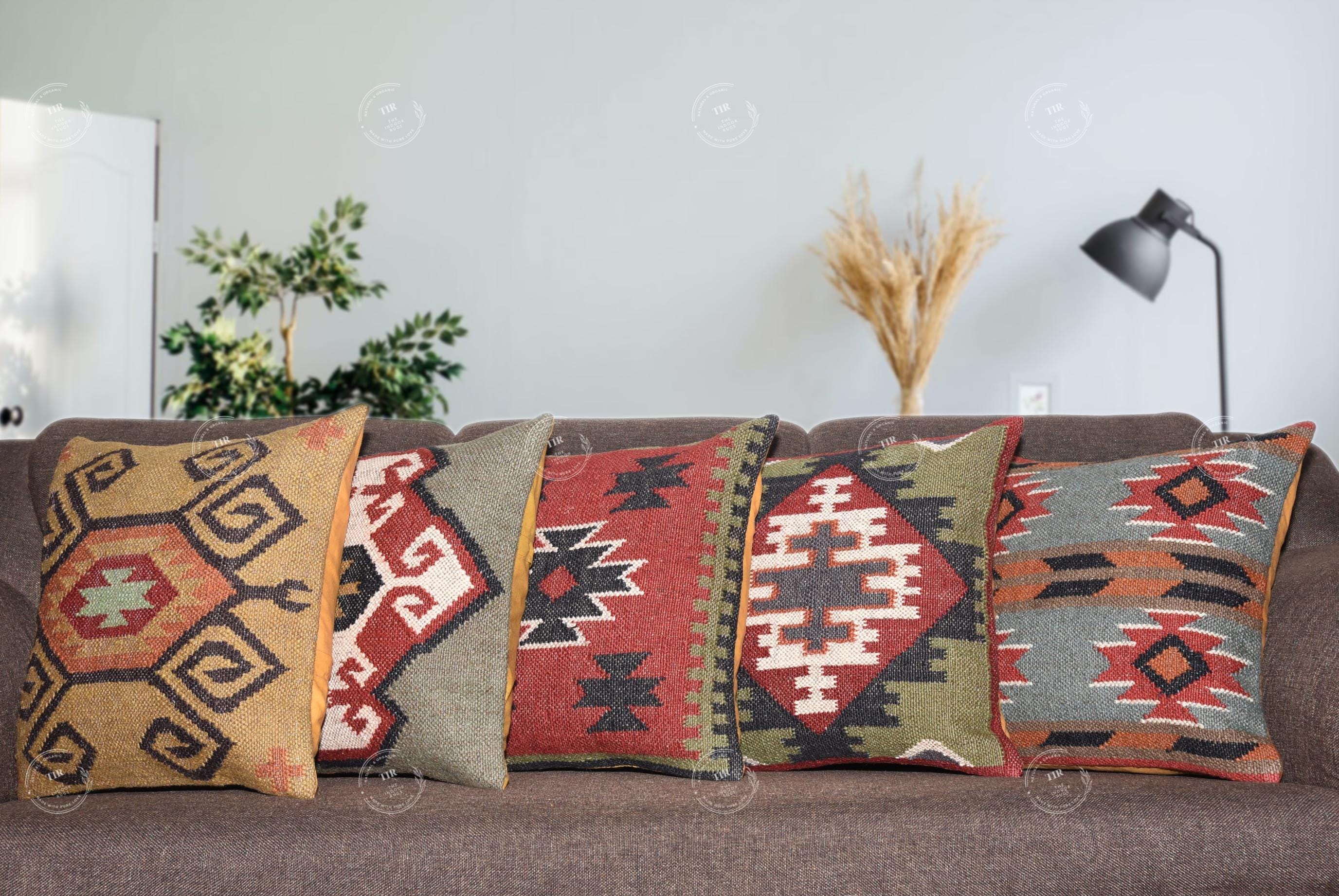 Set of 5 Natural Handmade kilim Cushion Cover, Bohemian Throw Pillo...