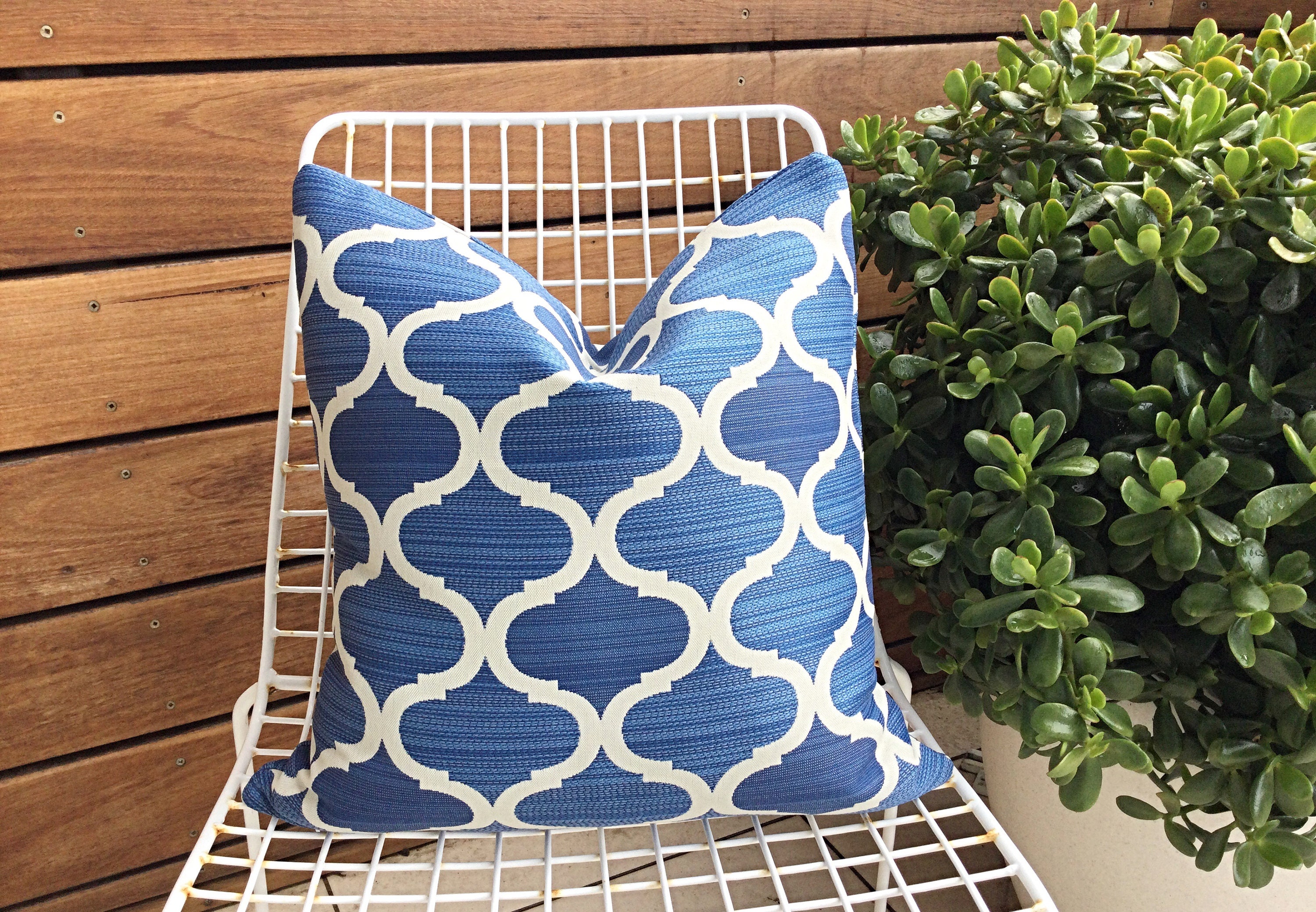 Blauer marokkanischer Gitter Kissenbezug: Bella Dura Home