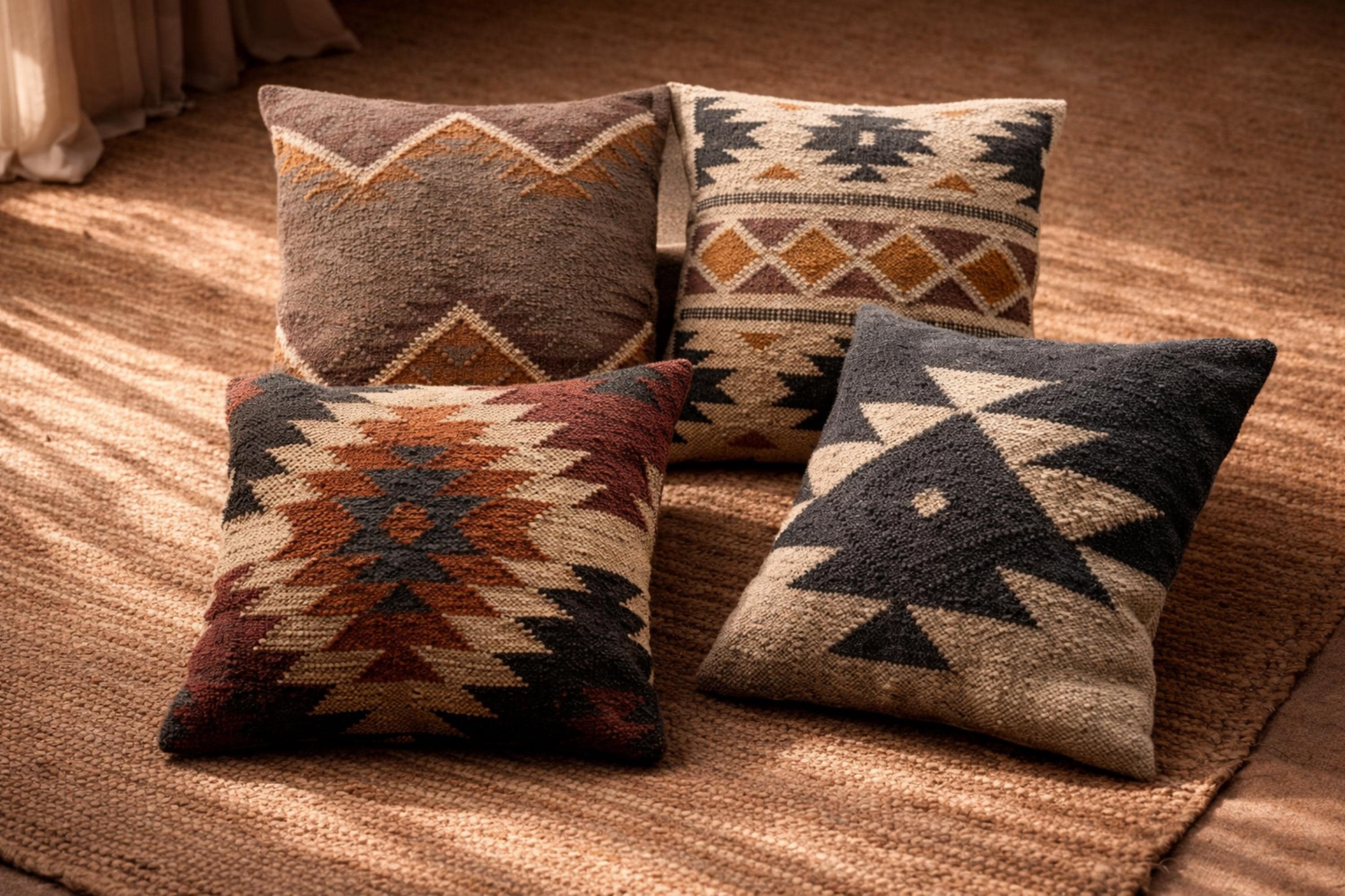 100 %, Handwoven Wool Jute Cushion Covers with Backside Hidden Closer Zip. Elevate your home d&eacut...