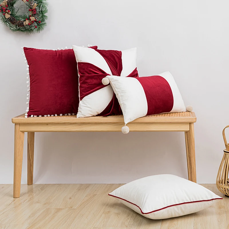 Klassisches Kissen weicher Weihnachts samt bedeckt rot weiß Pompon Ball Geschenk Geschenk Kiss...