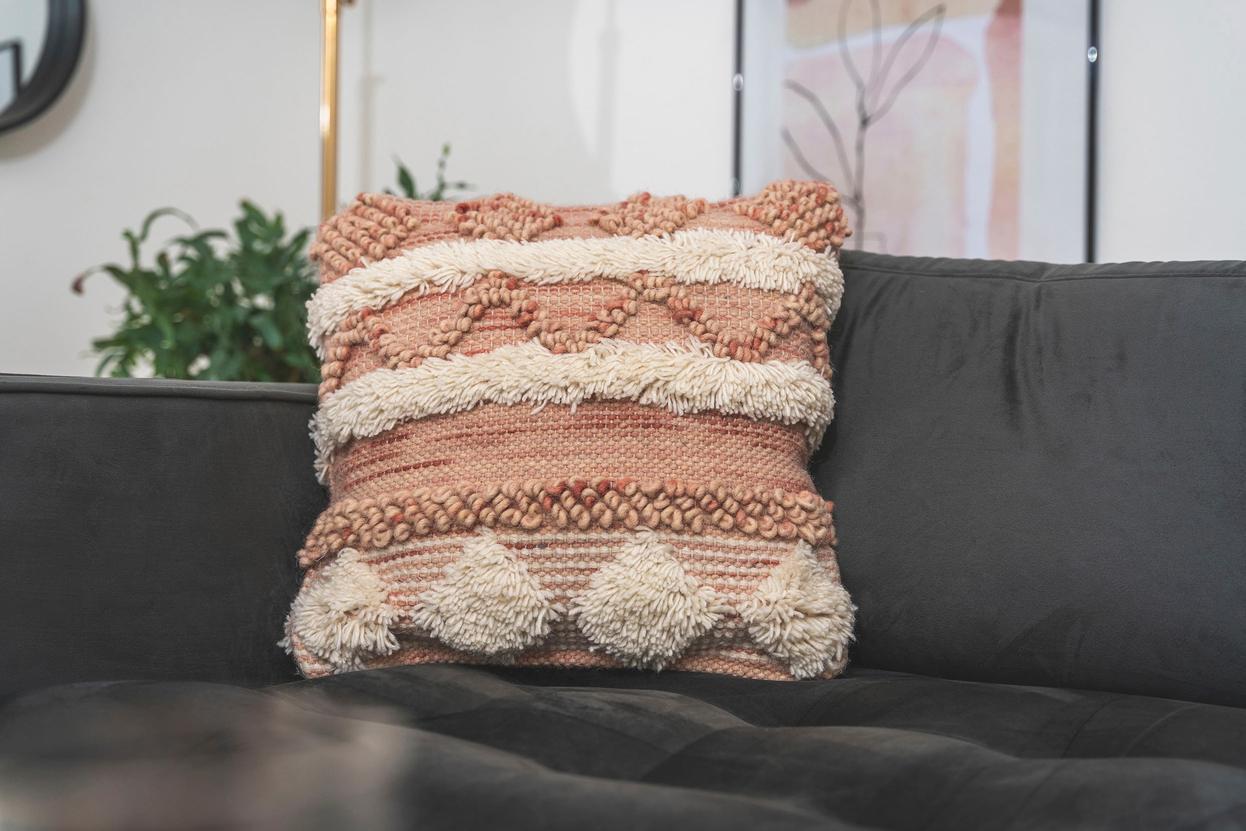 **Fransiges Kissen aus Wolle** Dieses Kissen versprüht eine einzigartige Atmosphäre und re...
