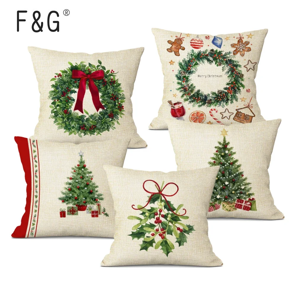 Kissenbezug aus Leinen mit Weihnachtsbaummuster, dekorativer Kissenbezug, Auto, Zuhause, Sofa-Dekora...