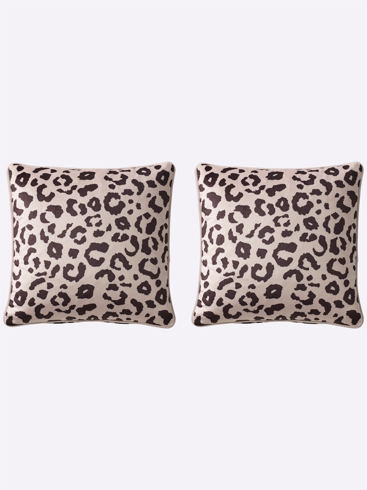 Kissenhülle 2er-Set. Beidseiteig in Veloursamt-Optik mit Leo-Print. Mit farblich passendem Rei&...