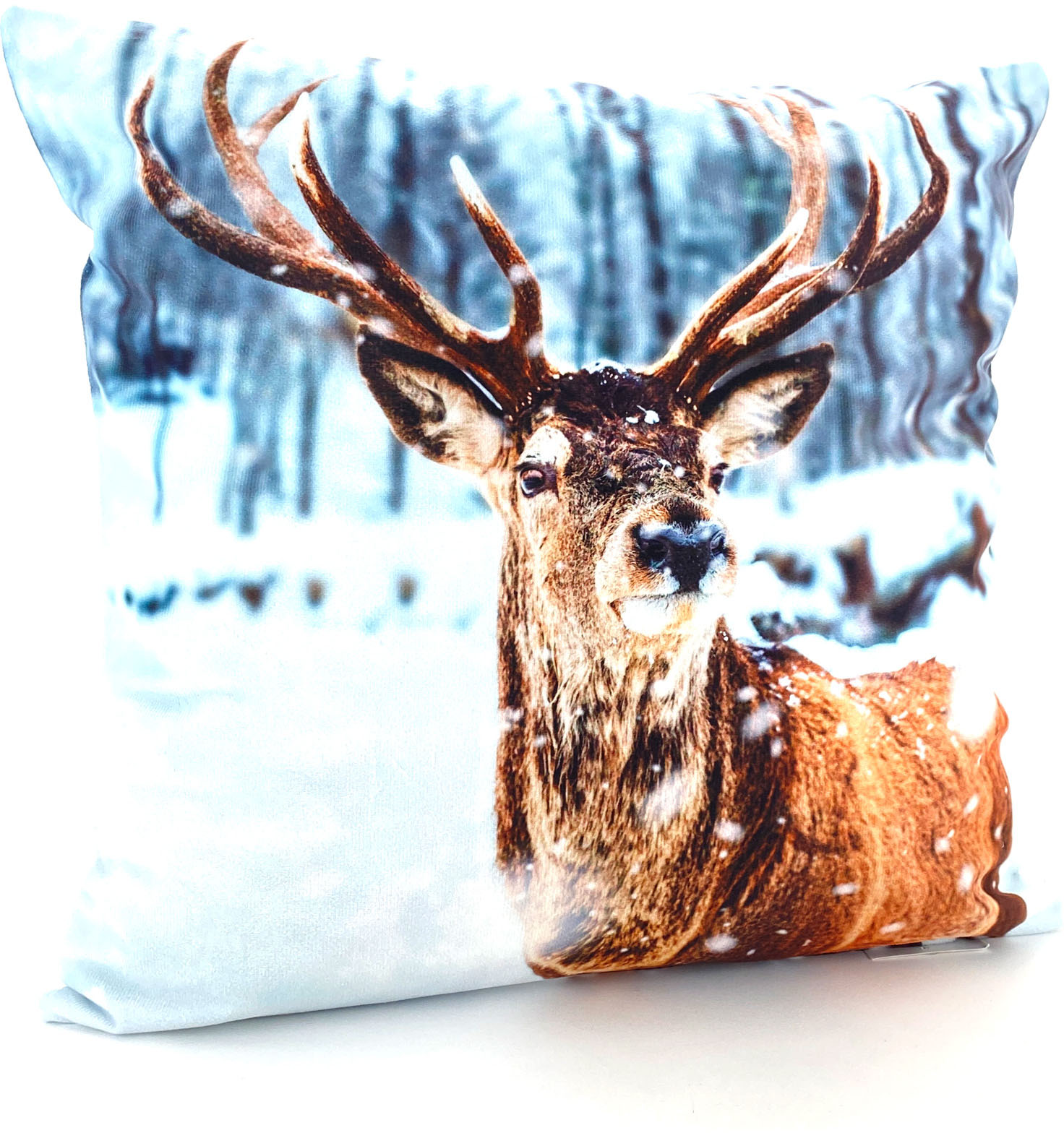 Die Kissenhülle "Hirsch" aus dem Hause Weckbrodt-Gardinen hat eine samtig weiche Ober...