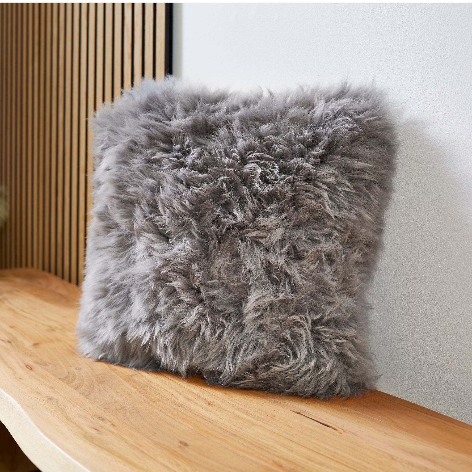 Das flauschige Dekokissen in der Größe 40 x 40 cm mit seiner Vorderseite aus echtem austr...